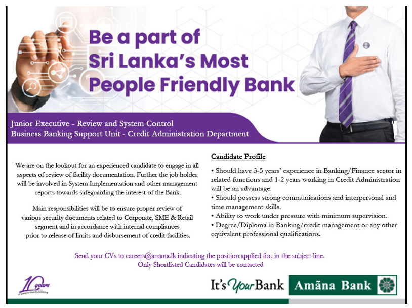 Senior Banking Associate / Junior Executive Banking Sri Lanka, Colombo LKR 100000 - LKR 200000 Full Time