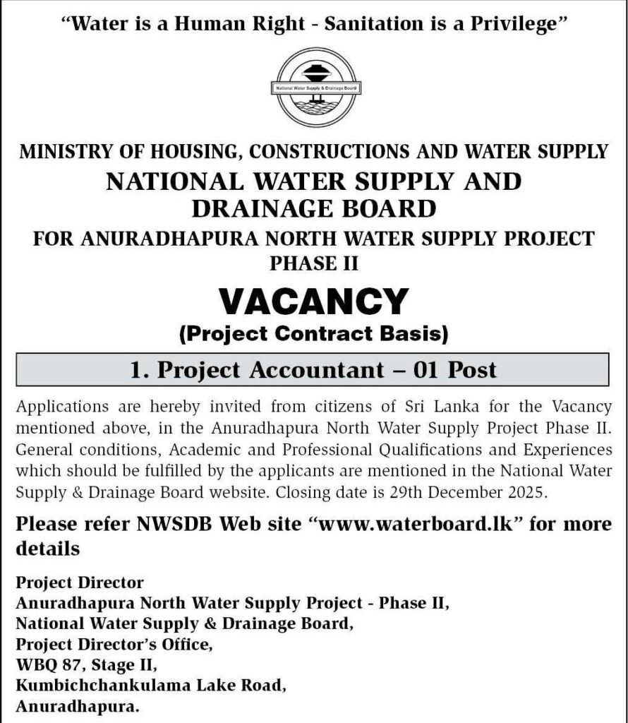 Project Accountant Accountant Sri Lanka, Anuradhapura December 8, 2025 LKR 70000 - LKR 100000 Contract Application ends: December 29, 2025 Apply Now Job Description Project Accountant Share this post Facebook Twitter LinkedIn Pinterest